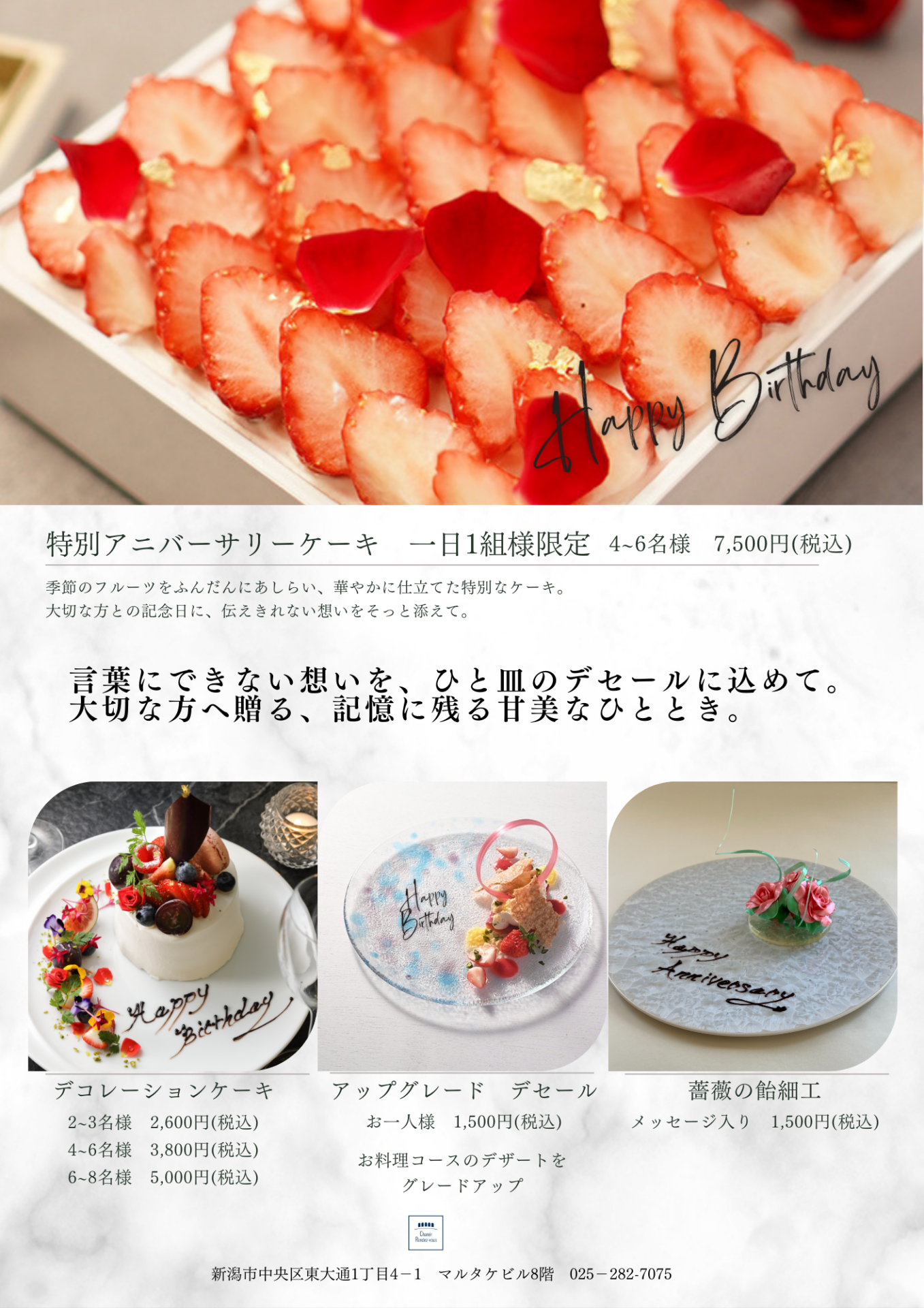 結びは、ご人数に合わせた特製ホールケーキ。メッセージを添え、笑顔を咲かせる祝福の甘美。