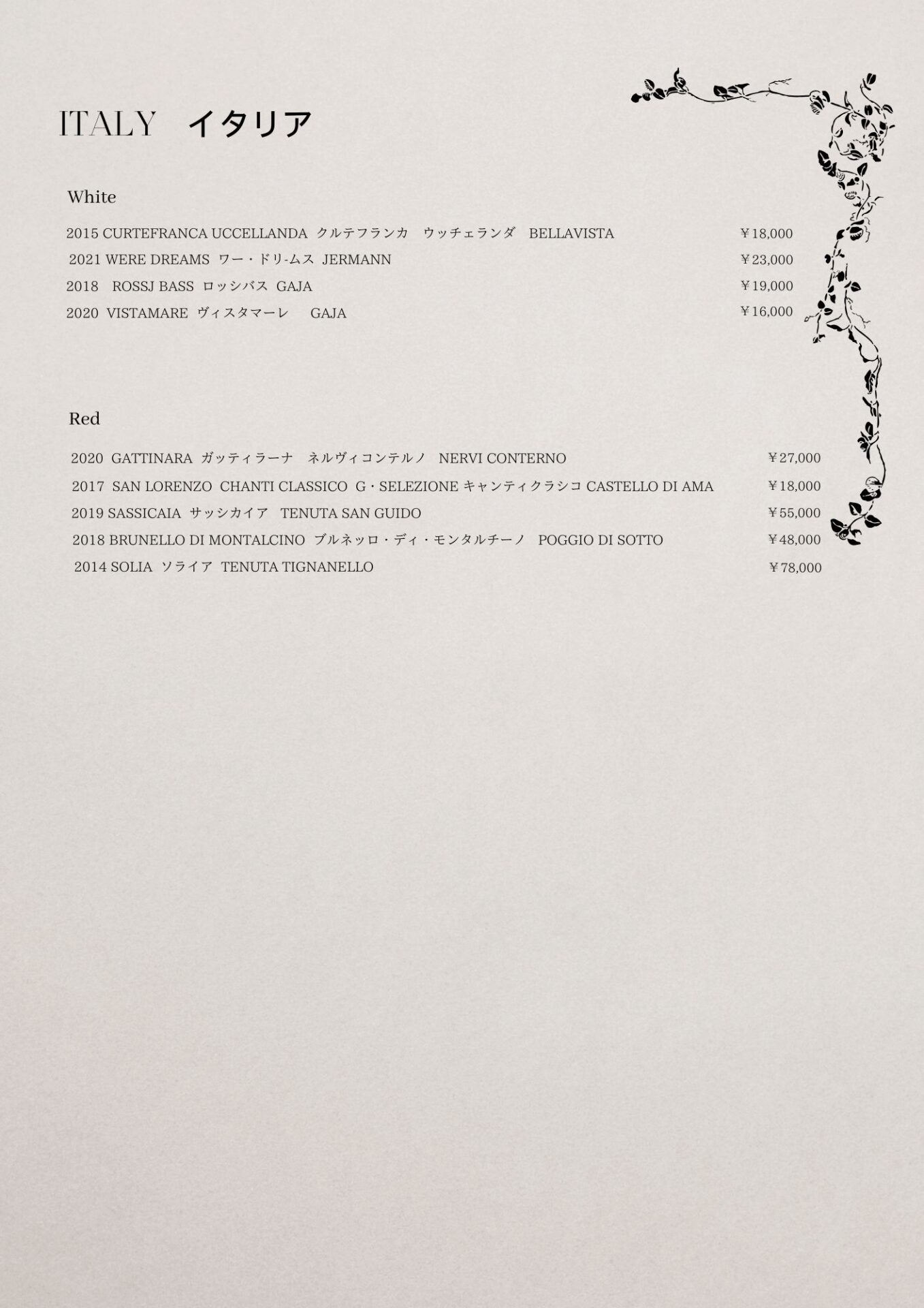 思い出の一本や特別なヴィンテージを、シェフの一皿とともに、心ゆくまでご堪能ください。