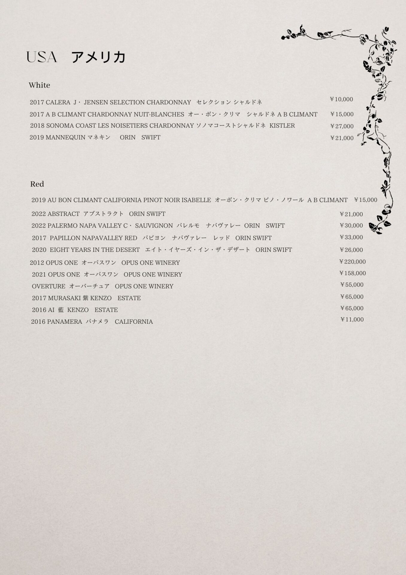 現在、入手困難な「あさつゆ」をはじめKENZO ESTATEの5種類のワインをお楽しみいただけます。