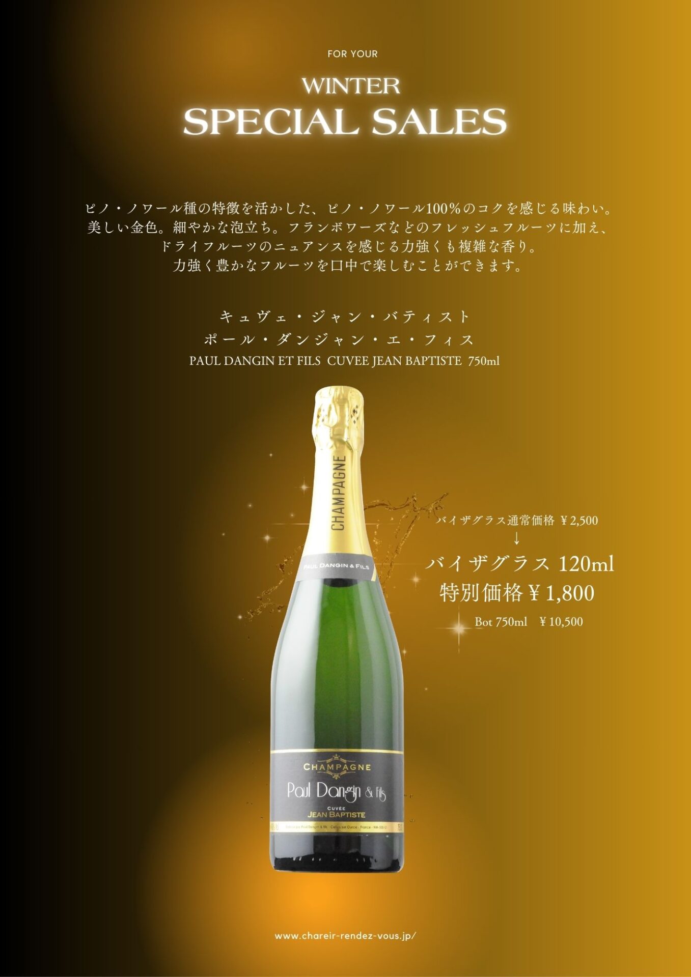以下のコースをご予約のお客様に、乾杯用シャンパーニュをお一人様につき1杯ご用意いたします: