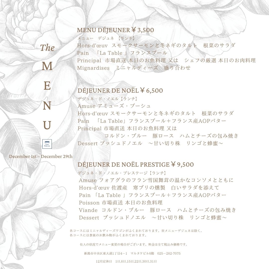 2023年クリスマスディナーの電話予約11月15日、web予約は11月14日よりスタートいたします。