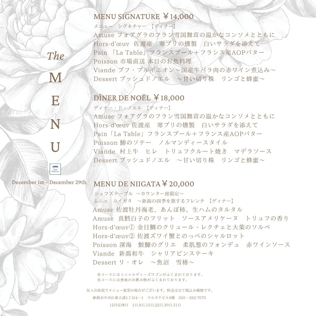 新潟の四季を巡るフレンチ 「Menu de Niigata / ムニュ ニイガタ」